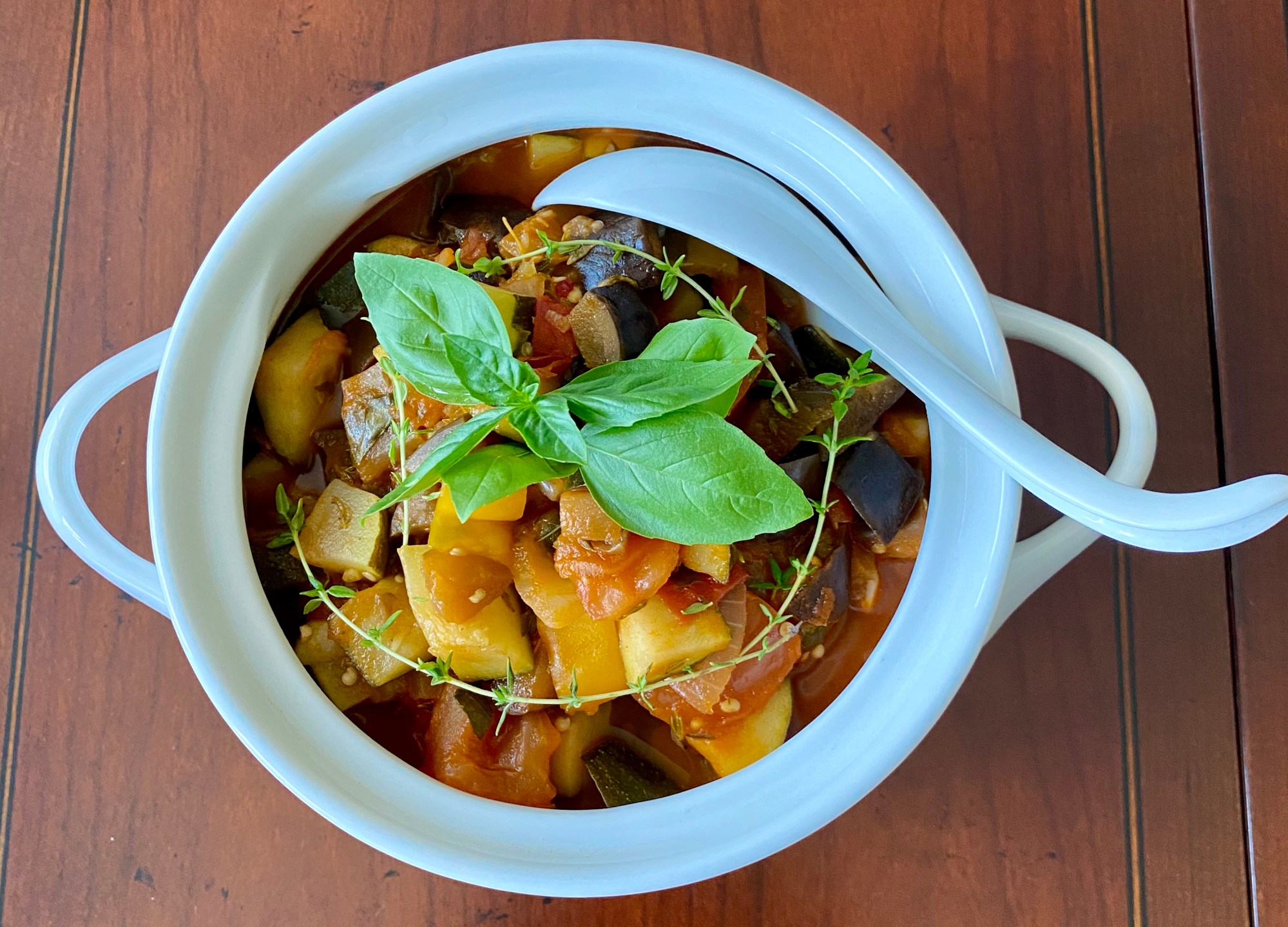 Ratatouille is a bright and chunky summer vegetable stew, rich with olive oil and fragrant with garlic and fresh herbs.